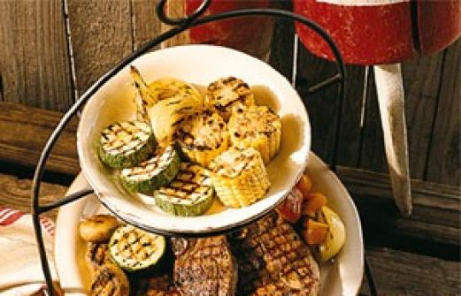 Majskolvar: Kokta, tinade frysta eller konserverade. Pensla med lite grillolja. Grilla hela eller i bitar 15-20 minuter. Squash: Skär squashen i 2 cm tjocka skivor, tvärs över, eller på längden. Pensla med lite grillolja, salta och strö över lite örtkryddor. Grilla 2-3 minuter på varje sida. [...]