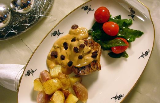 Antal portioner: 4 Ingredienser 800 g fläskfilé 1 1/2 tsk salt 3 krm malen svartpeppar 1 tsk torkad timjan Whiskysås: 2 +1 msk smör 1 1/2 dl russin 1/2 dl whisky 3 dl crème frai [...]