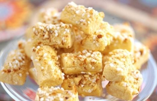 Ingredienser 5 st bittermandlar 200 g Svenskt Smör från Arla 4 1 ⁄ 2 dl vetemjöl 1 ⁄ 2 dl strösocker 1 st uppvispat ägg 1 ⁄ 2 dl hackad mandlar 2 msk pärlsocker Gör så här: Riv bittermandlarna fint. Skär smöret i bitar. Arbeta ihop smör, mjöl, [...]