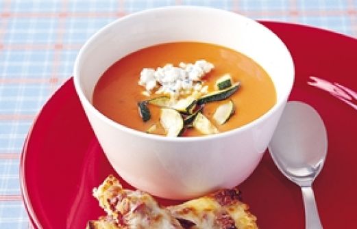 Ingredienser 5 dl Kelda ® Mild tomatsoppa Svenskt Smör från Arla 200 g zucchini 1 st pressad vitlöksklyfta 250 g KESO ® cottage cheese Gör så här: Koka upp soppan i en kastrull. Smält smöret i en stekpanna. Strimla zucchini och fräs den i smöret ca 1 min. Kr [...]