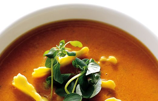 Antal portioner: 4 Ingredienser 250 g färska ostfyllda ravioli 1 gul lök 1 röd spansk peppar olivolja att fräsa i 1 vitlöksklyfta 3 dl tomatjuice 400 g paserade tomater 6 dl grönsaksbulj [...]
