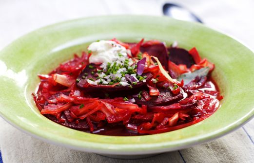 Antal portioner: 4 Färdigt på: 25 min Ingredienser 4 st rödbetor 0.5 st citron 1 st vitkålshuvud 1 st gul lök 1 st vitlöksklyfta 1 tsk timjan 1 st morot 2 st lagerblad 1 l g [...]