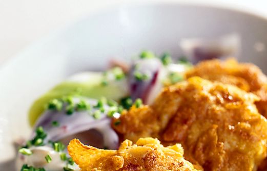 Antal portioner: 4 Ingredienser 400 g hokifilé, djupfryst 1 st ägg 1 dl vetemjöl 2 dl cornflakes salt och vitpeppar, malen olja till stekning 1 st citron Gör så här 1. Skär det halvtina [...]