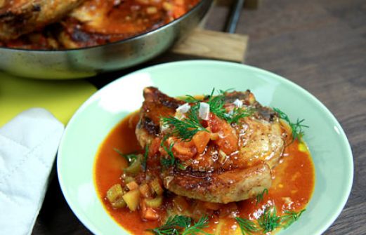 Antal portioner: 4 Ingredienser 4 fläskkotletter med ben 3 stjälkselleri 300 g morot 1 fänkål 1 gul lök 2 vitlöksklyftor 1 knippe dill 1 burk krossade tomater 1,5 dl vitt vin [...]