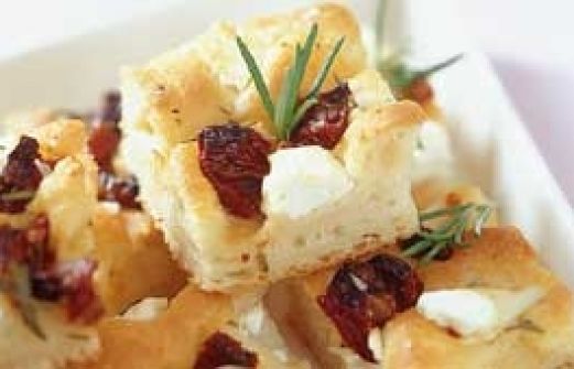 Ingredienser 50 g jäst 5 dl vatten ca 37° 1 1 ⁄ 2 tsk salt 2 msk Svenskt Smör från Arla 250 g Arla Köket Kesella ® kvarg lätt 5 dl durum vetemjöl 8 dl vetemjöl 150 g soltorkade tomater i olja 300 g Arla Apetina ® vitost 2 msk grovhackad färsk rosmarin 2 tsk gourmet [...]